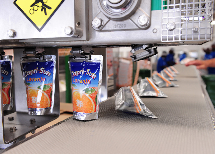 Esta a fábrica está equipada com 3 linhas de produção de água e equipamentos para produzir o sumo Capri Sun em saquetas de 200ml.